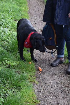 Begleitet wurden wir auf dem Weg auch von dem Therapiehund Azubi Dante (natürlich gemeinsam mit Frau Buffarello). Der Labrador hatte sichtlich Spaß an den matschigen Wegen und begleitete die Kinder geduldig. Er half dabei, einen Streit zu schlichten und beruhigte andere aufgeregte Kinder durch seine Anwesenheit.