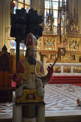 Zum Abschied öffnete Propst Hans-Bernd Serries uns extra noch eine Seitentür des Doms, damit alle Kinder beim Verlassen der Kirche noch einen Blick auf das Bild des Heiligen Ludger werfen konnten, über das er zuvor gesprochen hatte.