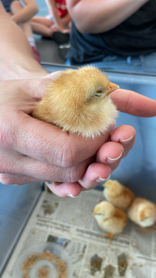 Die Küken der Familie Hüntemann waren erst am Wochenende geschlüpft und sind noch sehr klein. Bei Küken Silvester konnten die Kinder bereits die ersten Federn erkennen.