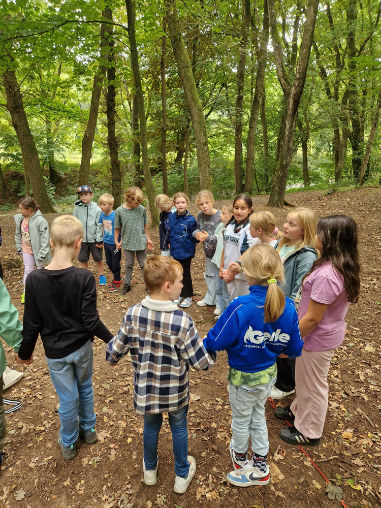 Die 4. Klassen fuhren vom 8.9.-10.9.25 auf den Annaberg in Haltern. Dort tauchten wir in die Geschichte von Ronja Räubertochter ein und wurden zur Bärenbande. Wir spielten viel im Räuberwald, bastelten Räuberkutten und stärkten durch Kooperationsspiele unsere Gemeinschaft. Am Lagerfeuer backten wir Stockbrot und versuchten selbst Feuer zu machen. Unsere Klassenfahrt endete mit dem Räubermahl und der anschließenden Party. Es war eine schöne Zeit, die uns noch enger zusammen brachte.